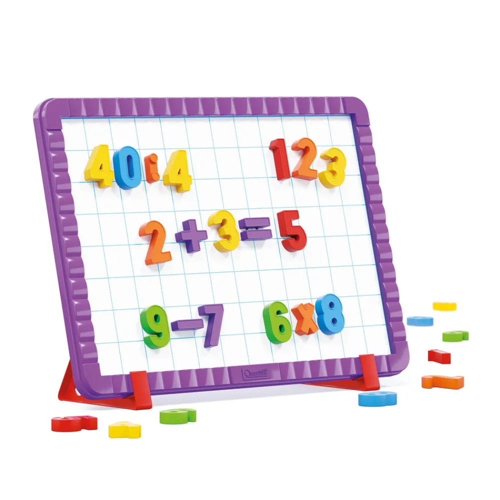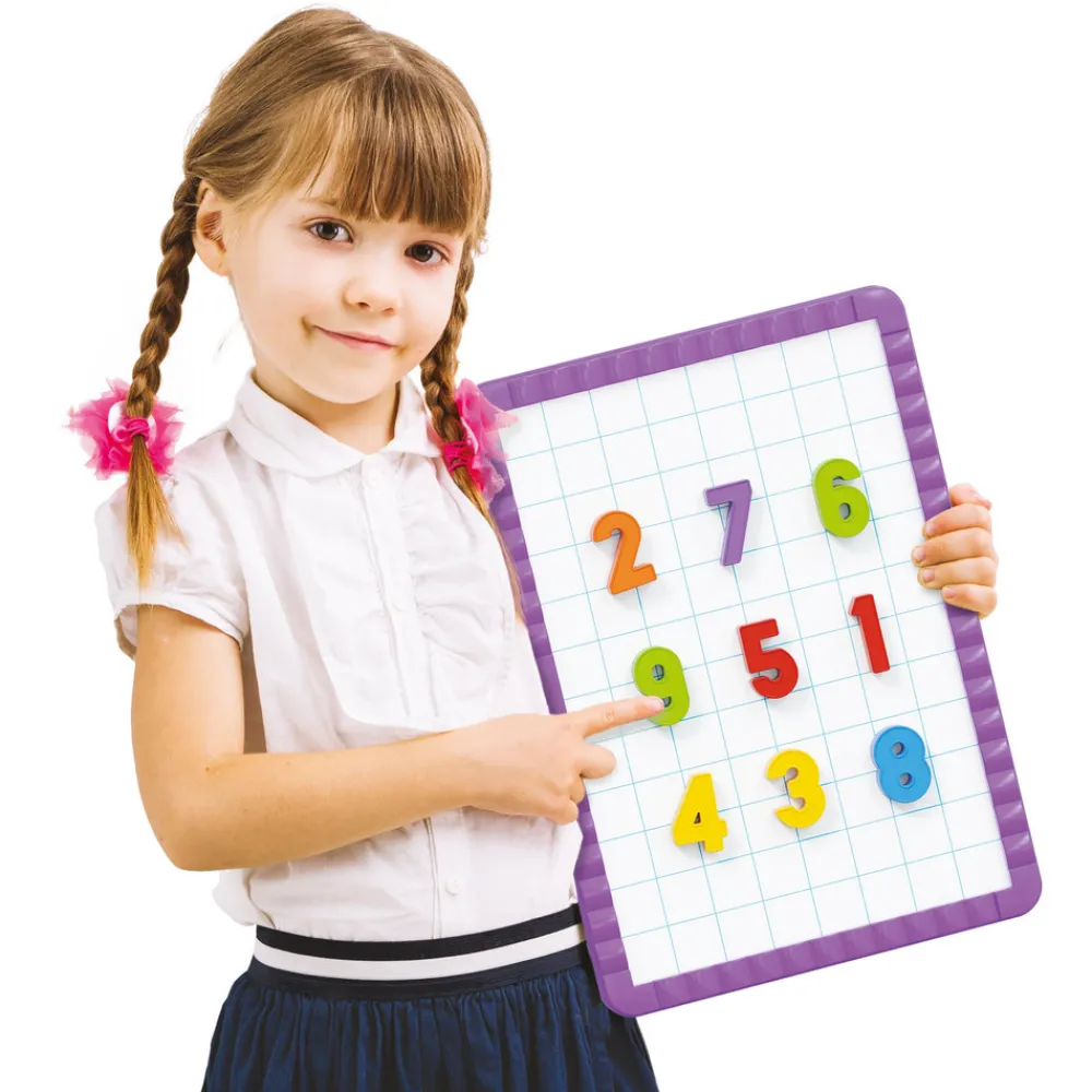 Lær at tælle og regne med disse farverige talmagneter, der er klar til at blive brugt på den medfølgende magnettavle eller andre metaloverflader.