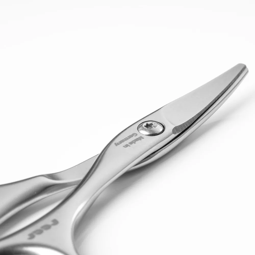 Denne saks har korte knive for sikker skæring og spidsen er afrundet.