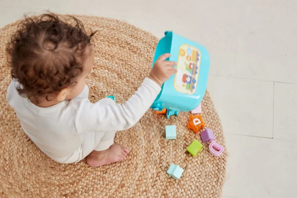 Puttekasse fra Scandinavian Baby Products. Lær barnet om former og farver med put-i-hul kassen. Alle klodser har flotte farver og forskellige former.