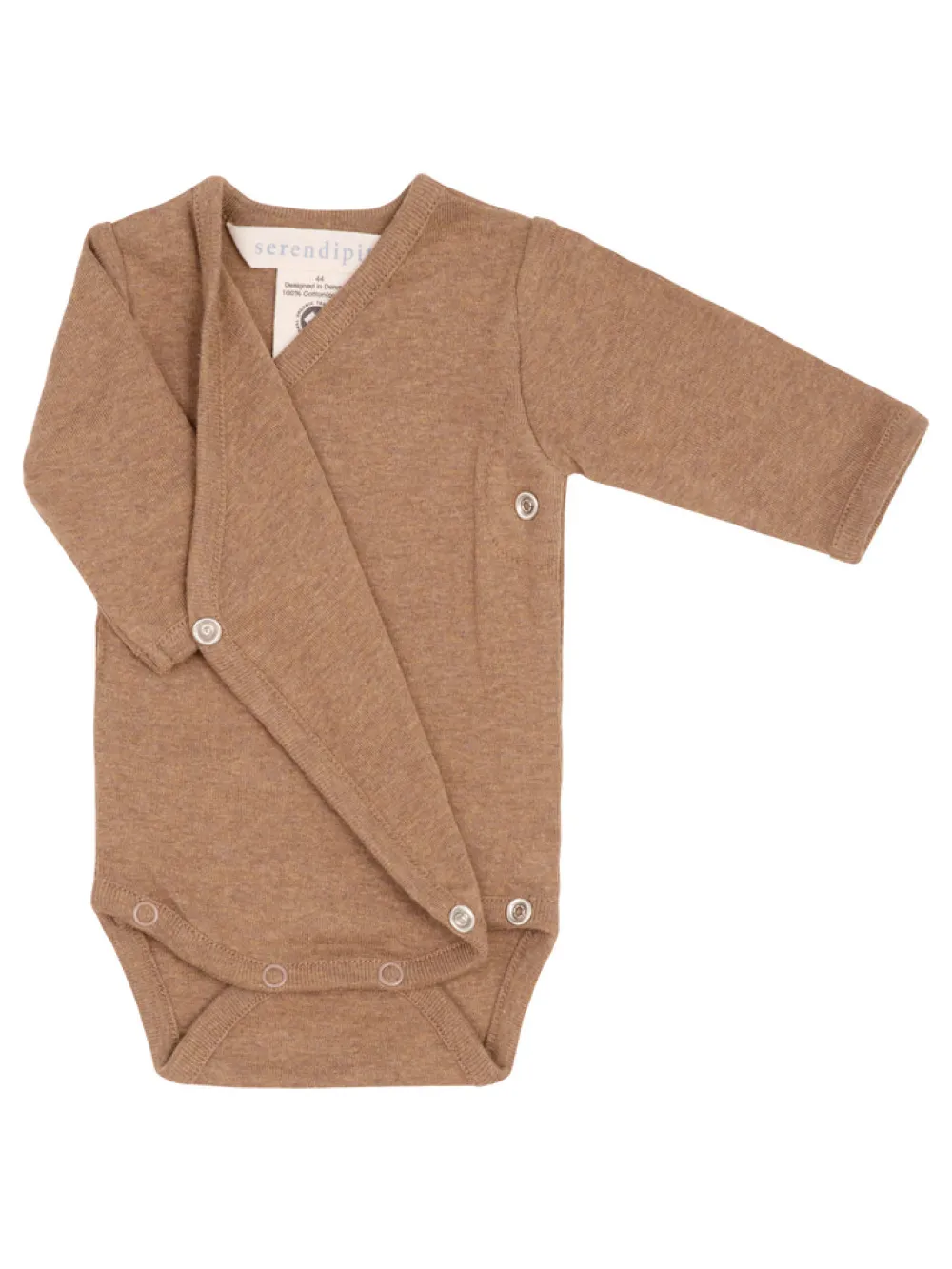 Slå-om body med trykknapper til baby første tid. Syet af blød økologisk bomulds rib.