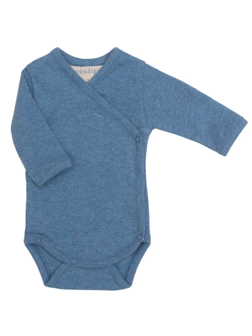 Slå-om body med trykknapper til baby første tid. Syet af blød økologisk bomulds rib.
