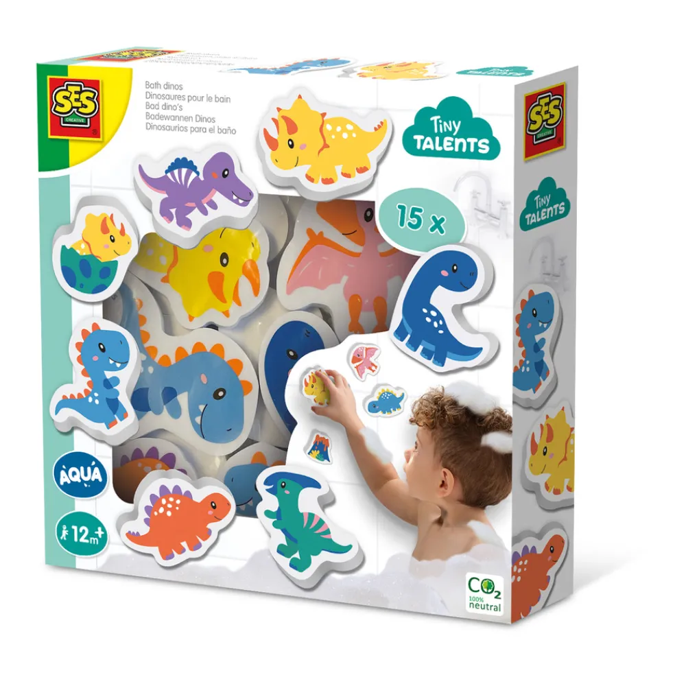 Gør badning til en farverig dinoverden med skumdinosaurer, der er nemme at klæbe på våde overflader, og nemme at fjerne igen.