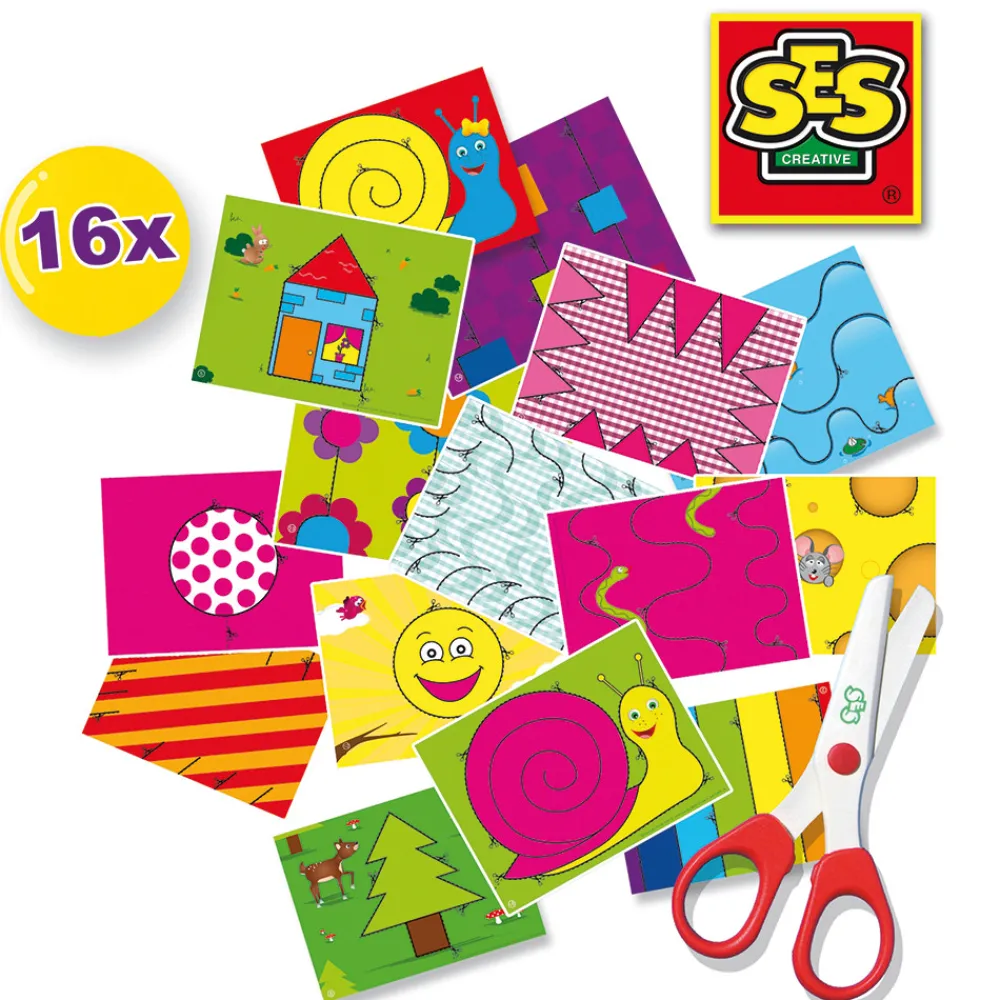 Lær dit barn at klippe med børnesaks. 16 klippeark medfølger.