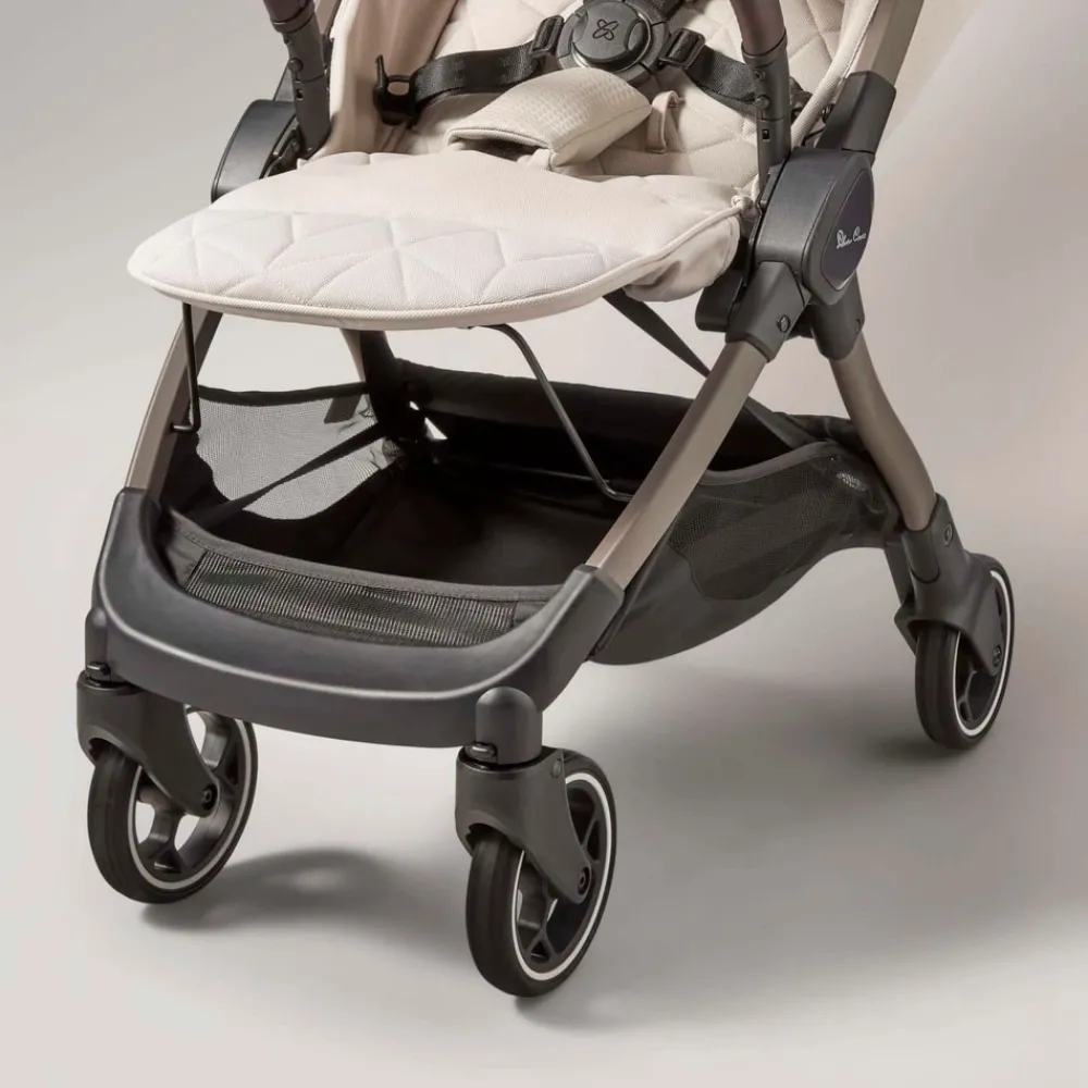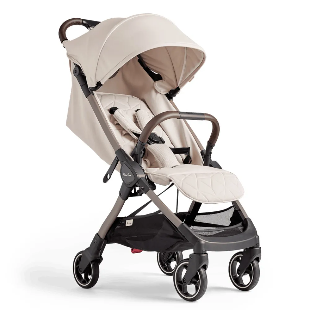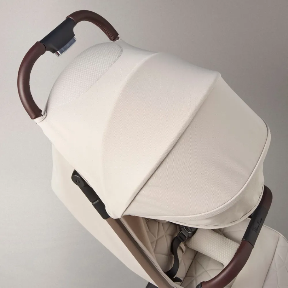 Betrækket er nemt at vaske og lavet af genanvendte plastikflasker. Kombineret med de fine veganske læderdetaljer og det klassiske Silver Cross logo, fremhæver det smukke betræk barnevognens stilrene æstetik.