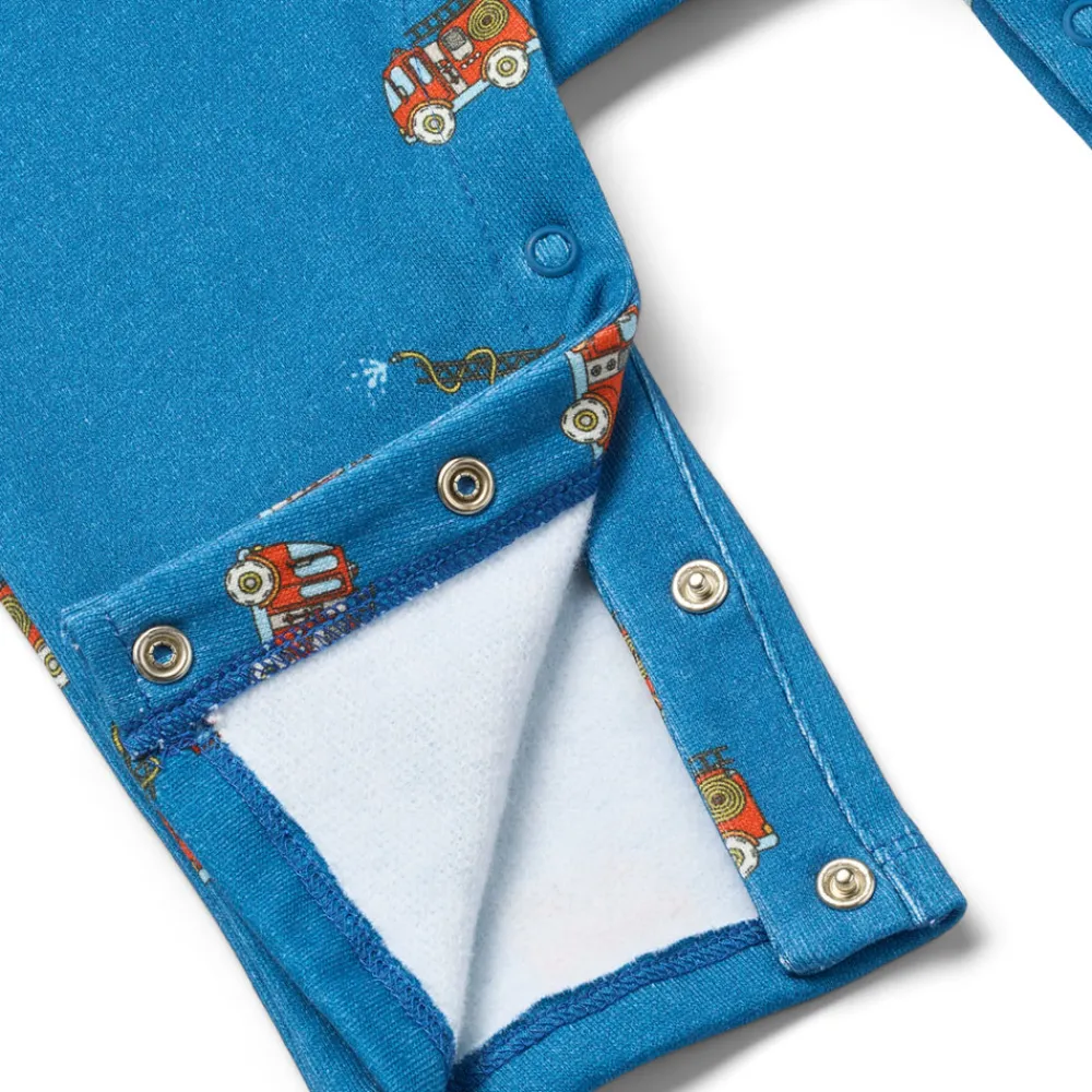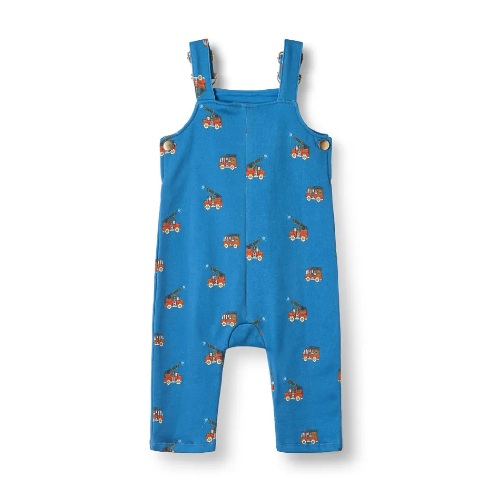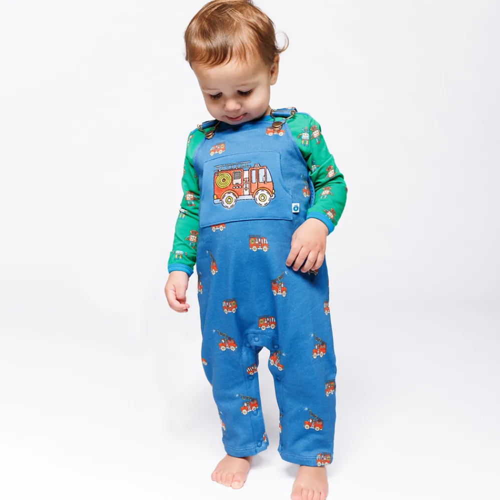 Dorset Golden Smækbukser fra Småfolk i farven Vivid blue er perfekte til små eventyrere, der elsker farver og sjove motiver. Smækbukserne er dekoreret med et charmerende brandbil-print over det hele og har en praktisk brystlomme med en broderet brandbil, som giver et ekstra legende udtryk. De justerbare seler med knapper sikrer en god pasform, mens trykknapper mellem benene gør det let at skifte ble. Bukserne er fremstillet i en blød og behagelig bomuldskvalitet, der giver masser af bevægelsesfrihed til leg og udforskning. Perfekte til både hverdag og festlige lejligheder, hvor komfort og stil går hånd i hånd.