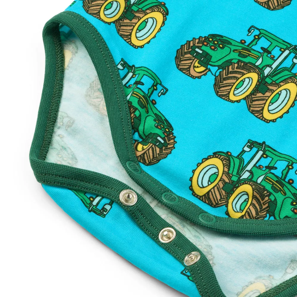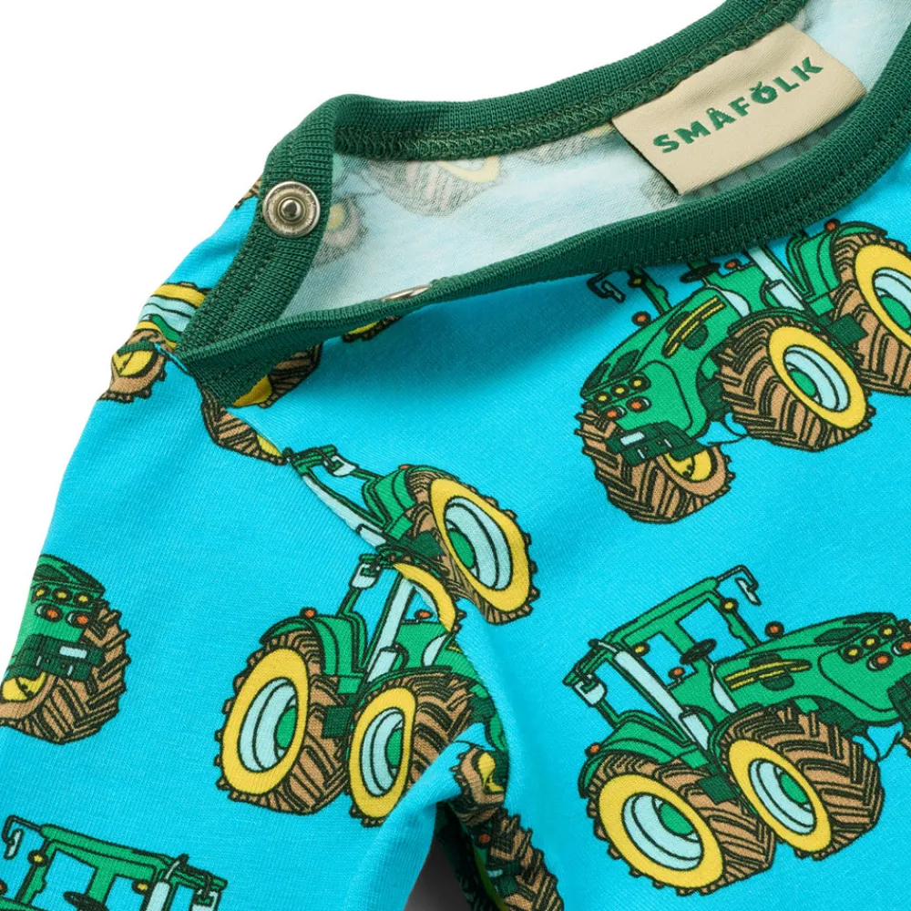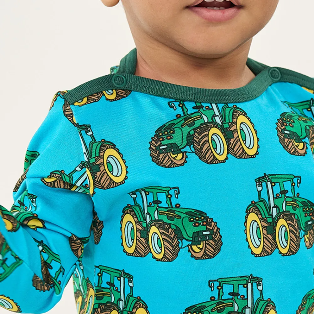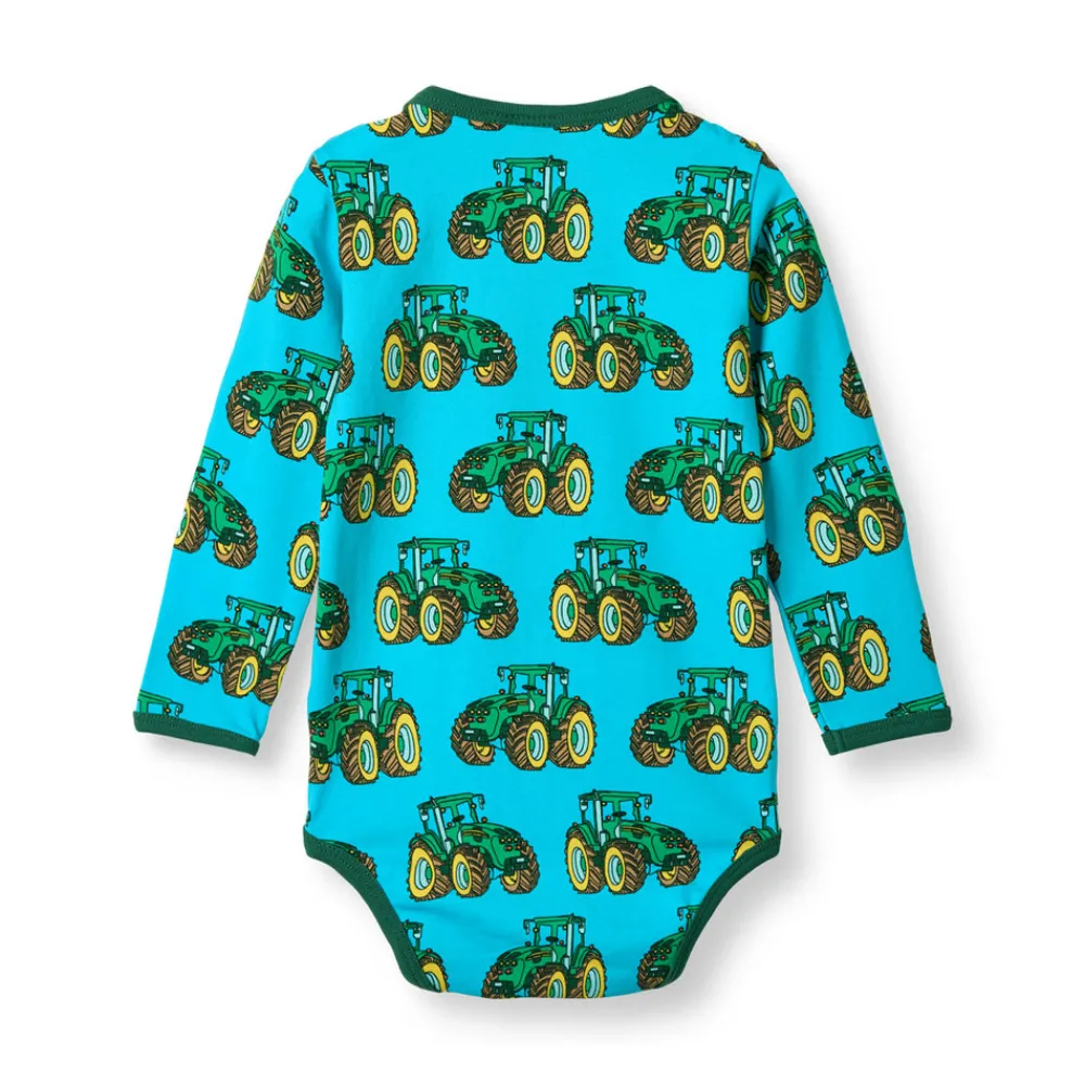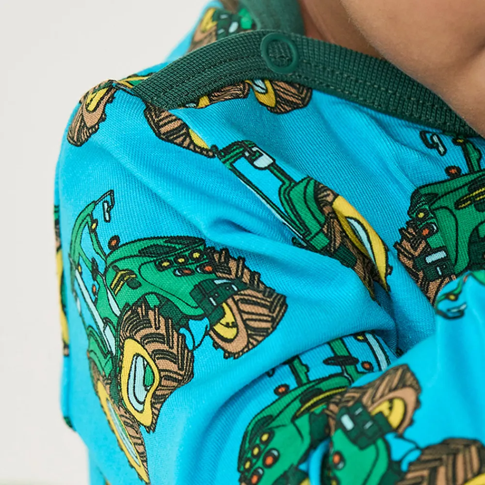 Det legende traktorprint tilføjer et strejf af spænding, perfekt til de små, der elsker sjove designs. Småfolks print er tegnet med fokus på glade farver, detaljer og historier. Vores bodyer er en god måde at tilføje personlighed til dit barns garderobe, samtidig med at dit barn kan føle sig komfortabel hele dagen.