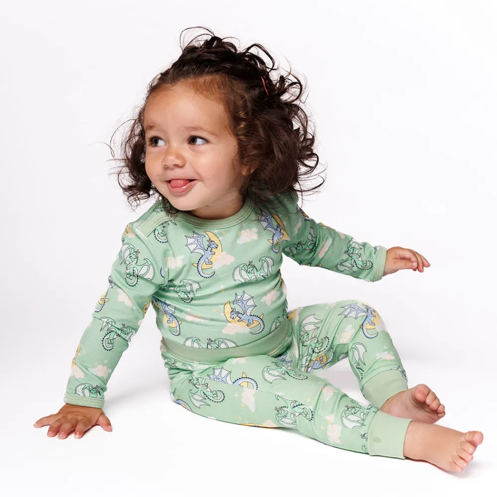 Søde drømme venter med vores yndige sovende drager-print, perfekt til hyggelige stunder med din baby.