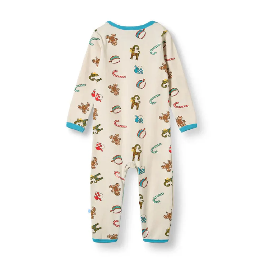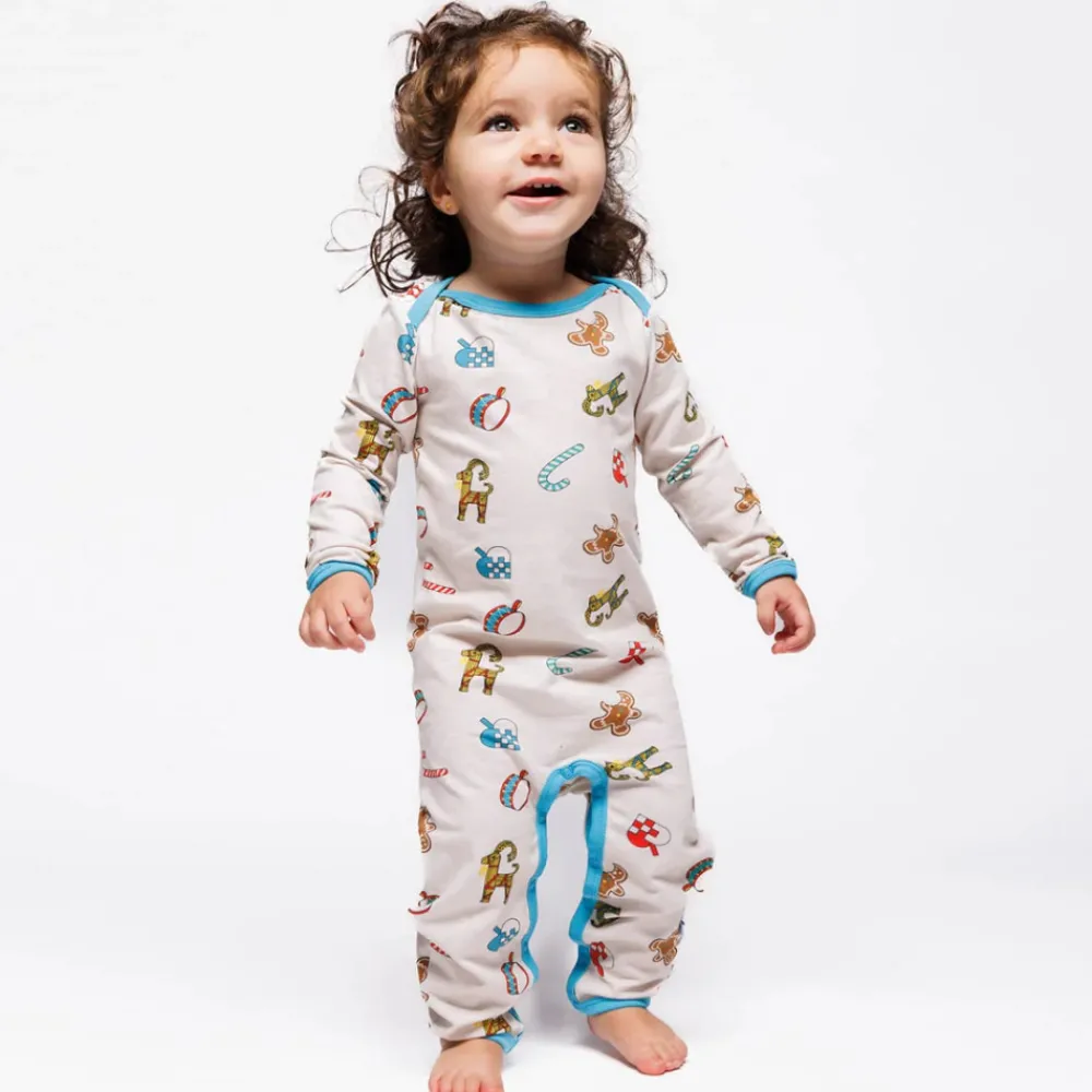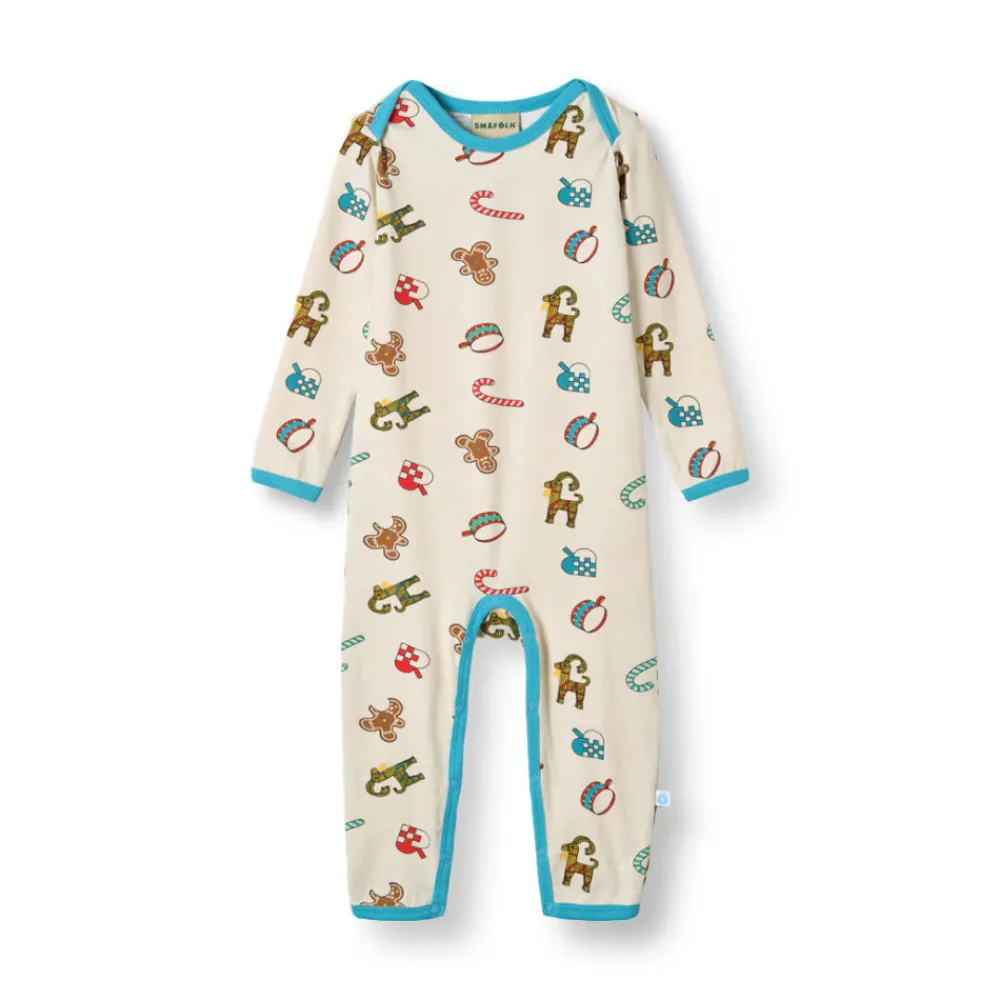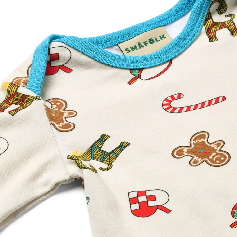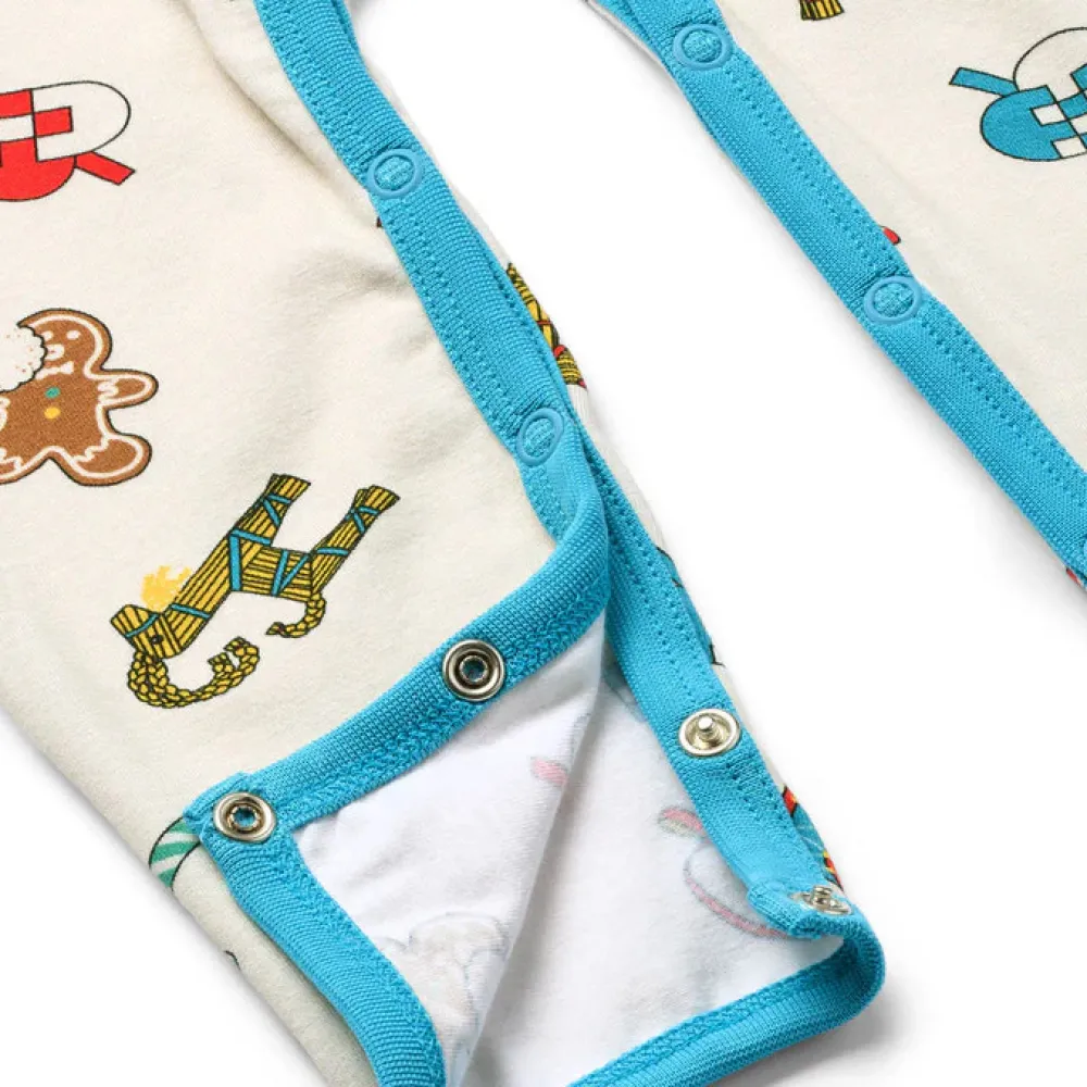 Dette dejlige juleprint har noget for enhver smag. Printet er en fejring af sæsonen og viser nogle danske juletraditioner såsom de håndfoldede julehjerter, trommen, julegeden lavet af hø og de søde slik julestokke. Småfolks print er tegnet med fokus på glade farver, detaljer og historier. Vores heldragter til babyer er en god måde at tilføje personlighed til dit barns garderobe, samtidig med at dit barn kan føle sig komfortabel hele dagen.