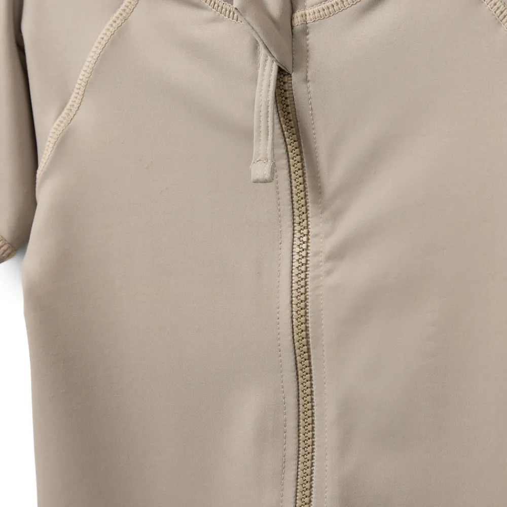 Badedragt med korte ærmer og ben. Dragten har lynlås foran for nem på- og afklædning. Fremstillet i en genanvendt polyesterblanding af 82% genanvendt polyester og 18% spandex for en strækbar og komfortabel pasform.