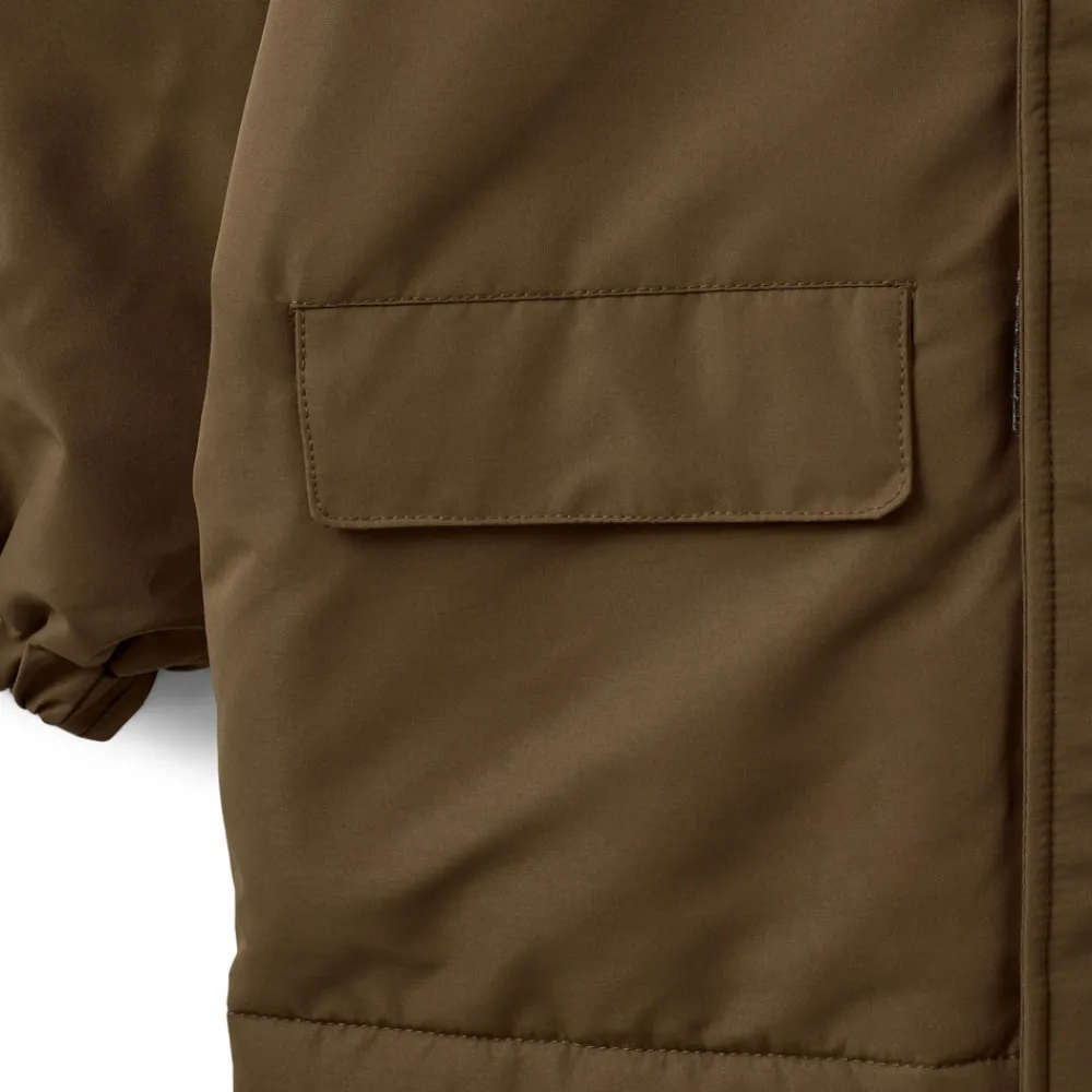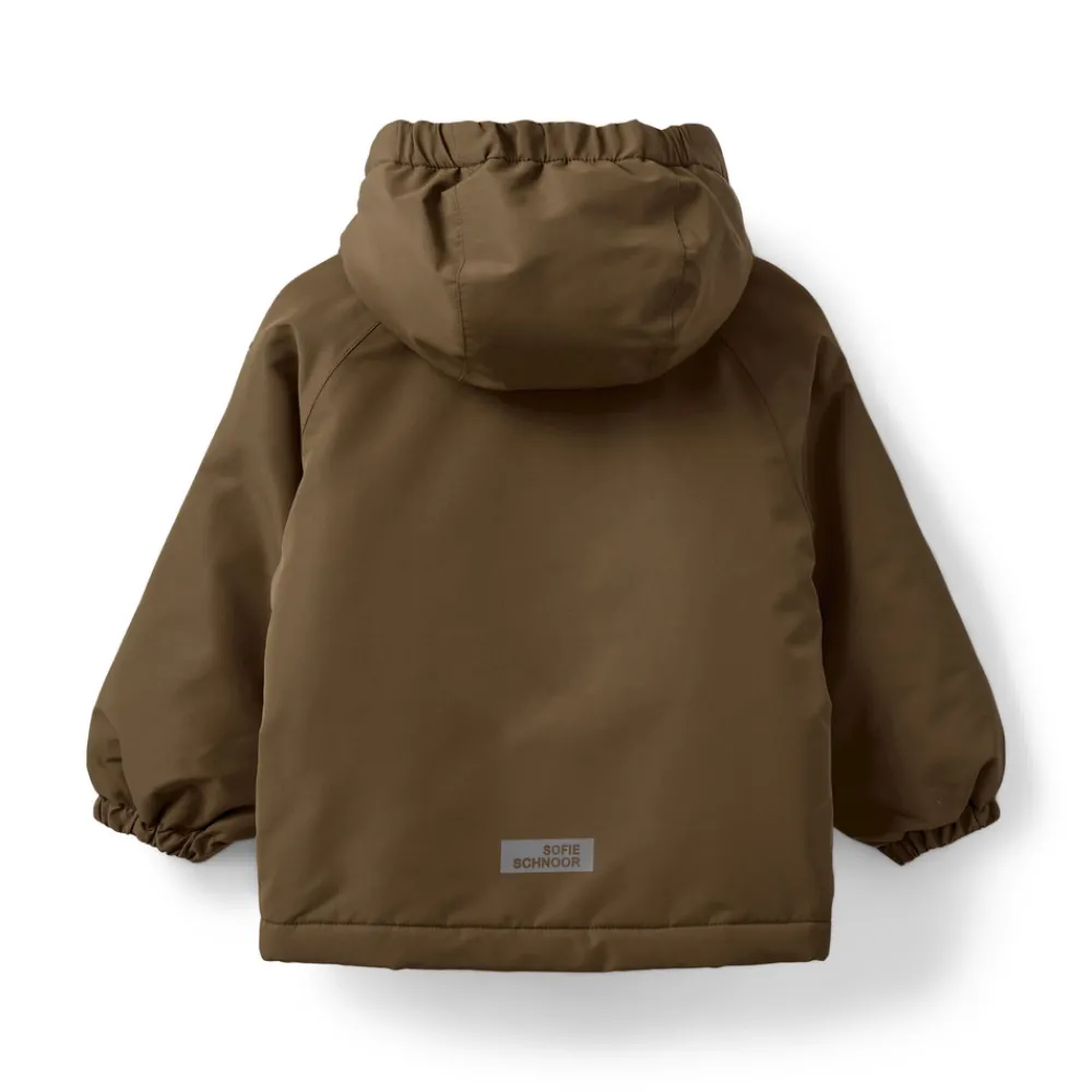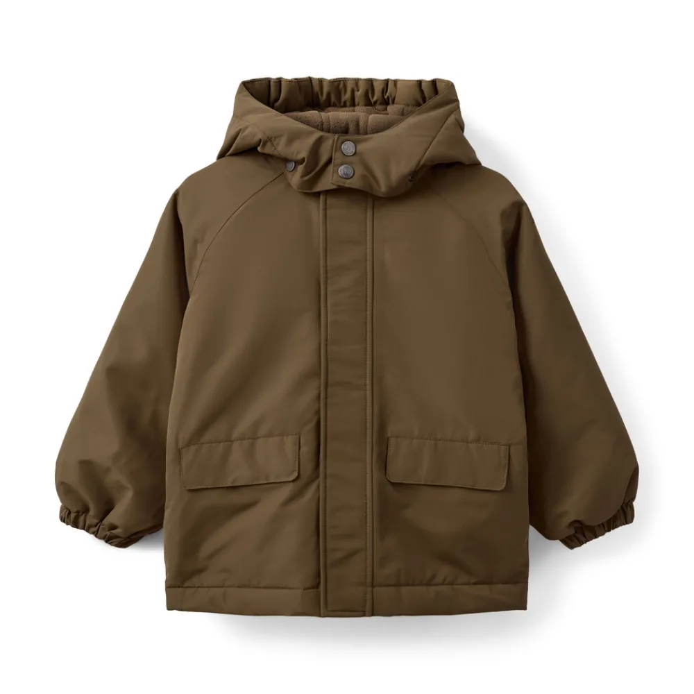 Jakke med hætte, 2 lommer foran og elastik i ærmerne.