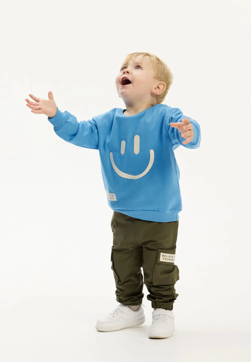 Charmerende baby-sweatshirt fra THE NEW siblings med et glad smiley-print i en skøn lyseblå farve. Denne sweatshirt er perfekt til hverdagsbrug og hyggelige weekender. Kombinér den med sweatpants for et afslappet look eller med jeans for et mere casual outfit.