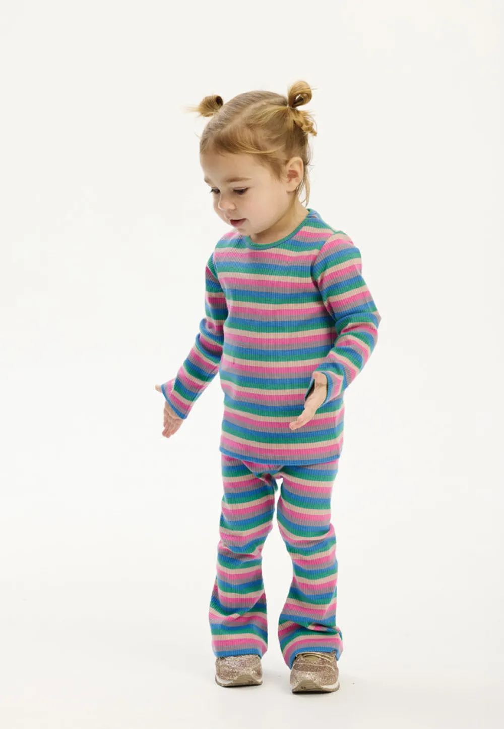 Skønne stribede ribbukser i smukke farver. Den brede elastiske linning sikrer en behagelig og stilfuld pasform, mens de vide ben giver masser af bevægelsesfrihed. Bukserne kan nemt styles op med en fin top og pæne sko til en festlig anledning, eller tones ned med sneakers og en afslappet overdel.
