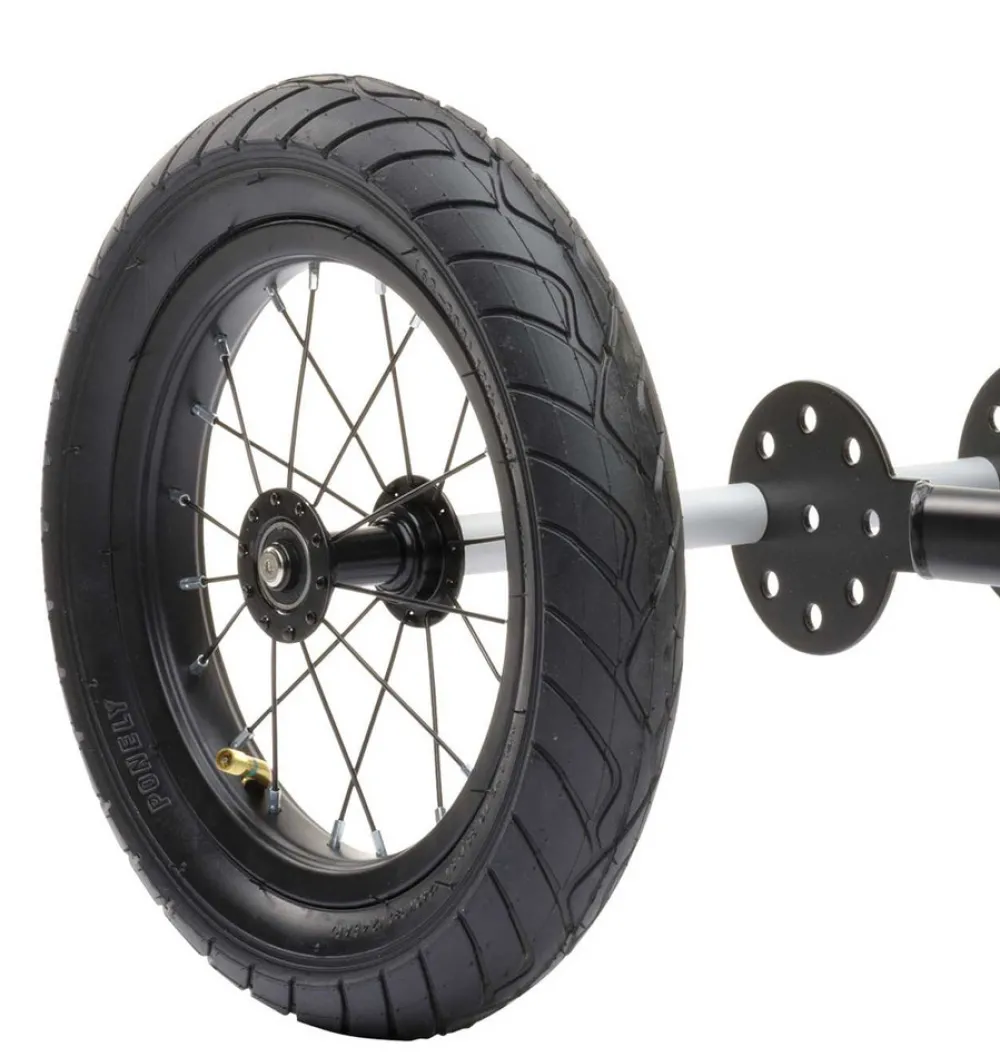 Den tohjulede Trybike kan nemt laves om til en trehjulet løbecykel. En del af Trybikes koncept er nemlig, at du let kan lave cyklen om. Viser det sig at en tohjulet alligevel var for stor en mundfuld for et barn, eller kommer der en lillebror eller lillesøster, så kan det ekstra hjul vise sig at være ganske uundværligt. Hjulet er af samme kvalitet som dem, der allerede sidder cyklen. Her er hjulet i varianten sort. Passer til alle Trybikes løbecykler i hvid, sort og antracitgrå