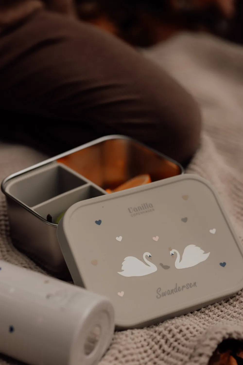 Vanilla Copenhagen madkasse i rustfrit stål / silikonelåg- og rumdeler – 1000 ml
