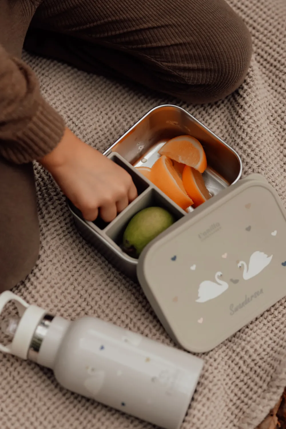 Madkassen er med rumdeler i silikone, der holder forskellige fødevarer adskilt, så de forbliver friske og lækre.