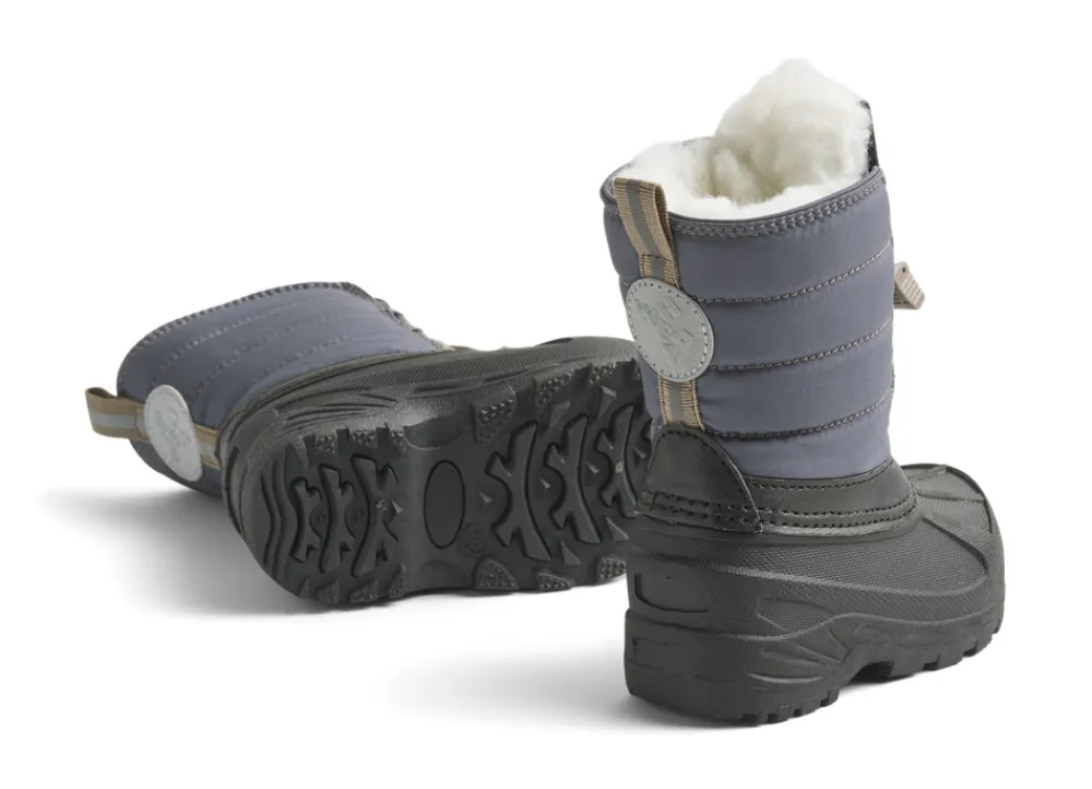 Cool og praktiske termovinterstøvler med snørelukning. Termo vinterstøvlerne er perfekte til den kolde efterårs- og vintersæson, da de har et behageligt og varmt uldfoer og er nemme for dit barn at tage på med en simpel lukning. For at holde de små fødder både varme og tørre har vi tilføjet en vandtæt gummisål, der går hele vejen op til overdelen.