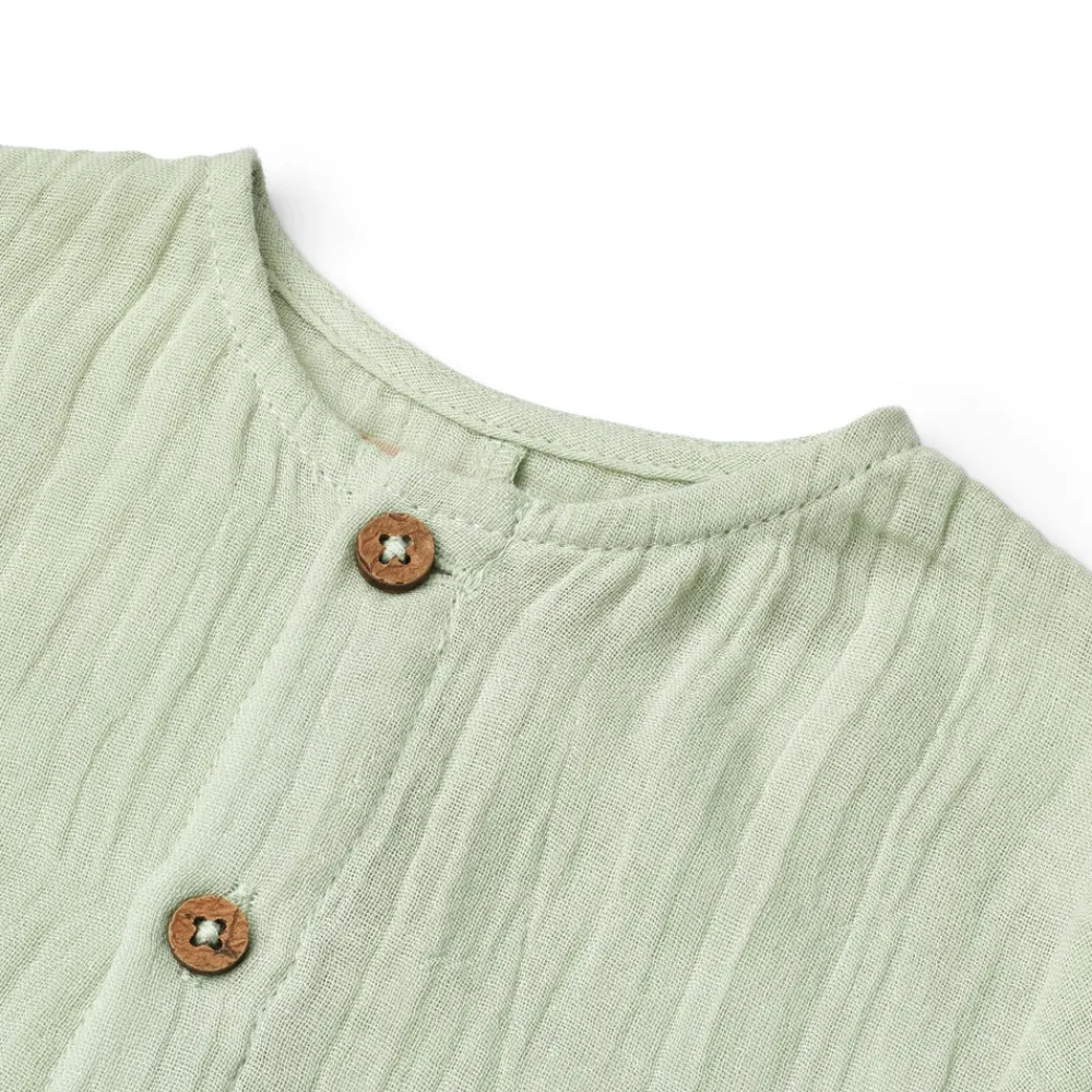 Kortærmet romper i blød økologisk bomulds gasbind til babyer.