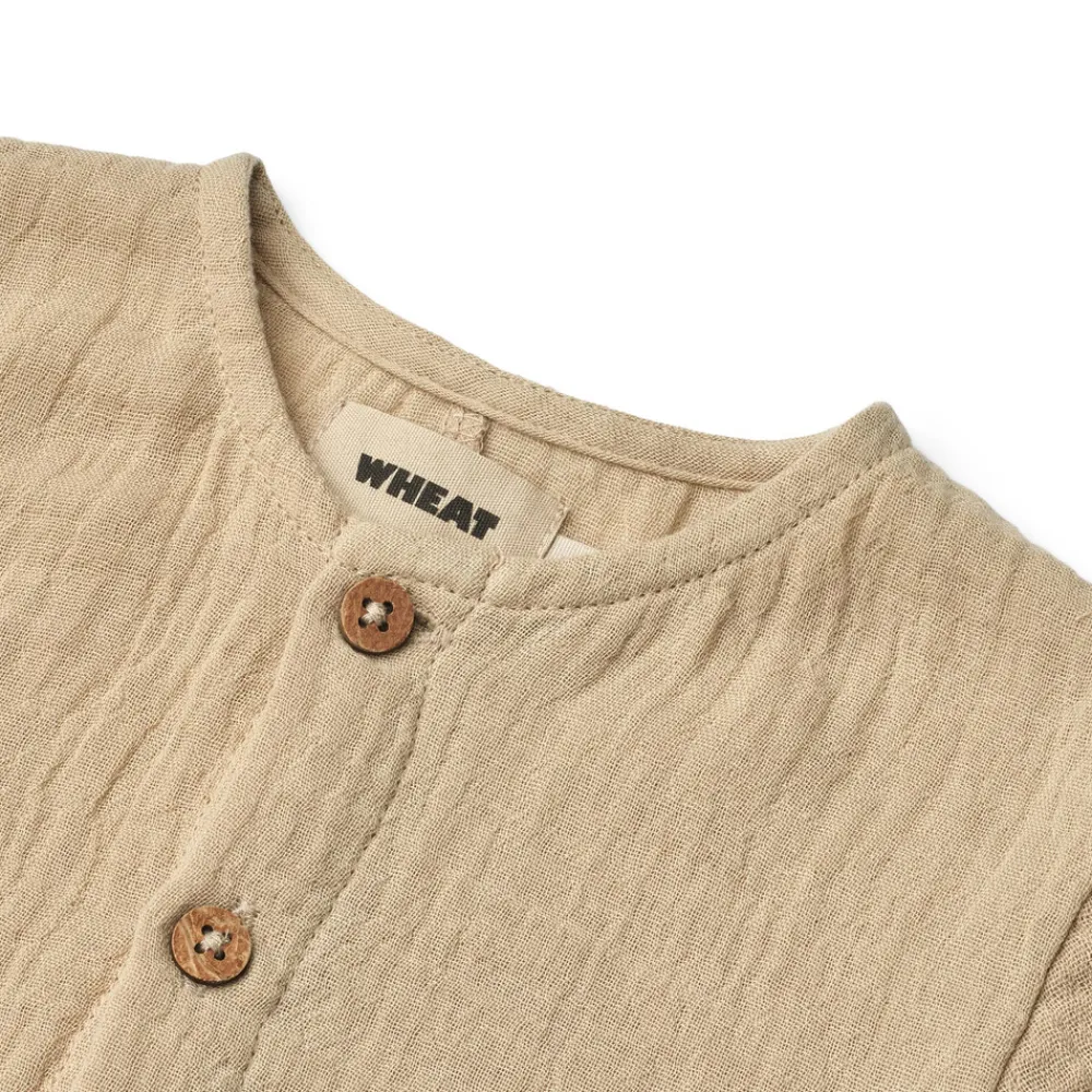 Wheat’s søde romper tilføjer lidt sødme til din babys garderobe. Romperen er behagelig at have på og har trykknapper ned foran, der gør det nemmere for dig at klæde din baby på. Rul op i benkanten og style det med sandaler for at fuldende det søde sommerlook.