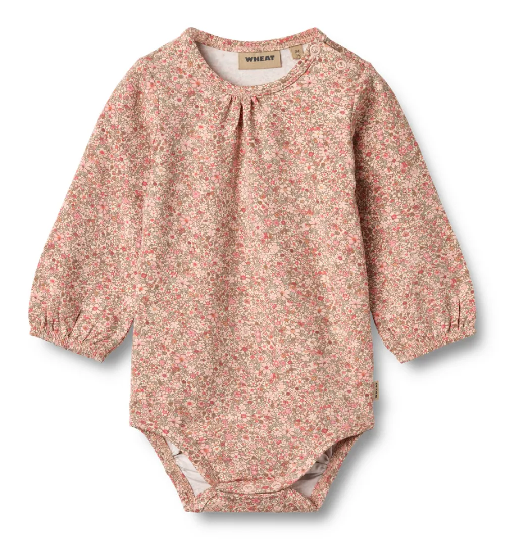 Langærmet printet body i blødt økologisk bomuld til din baby. Wheats basis body er en sand klassiker i garderoben, når det kommer til småbørn. Denne body har trykknapper på den ene skulder samt i bunden for bedre komfort, når du skal klæde dit barn på. Brug bodyen som den inderste del i ethvert outfit, da den er blød at have tæt på huden.