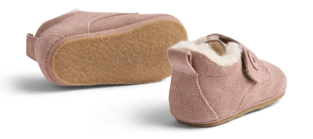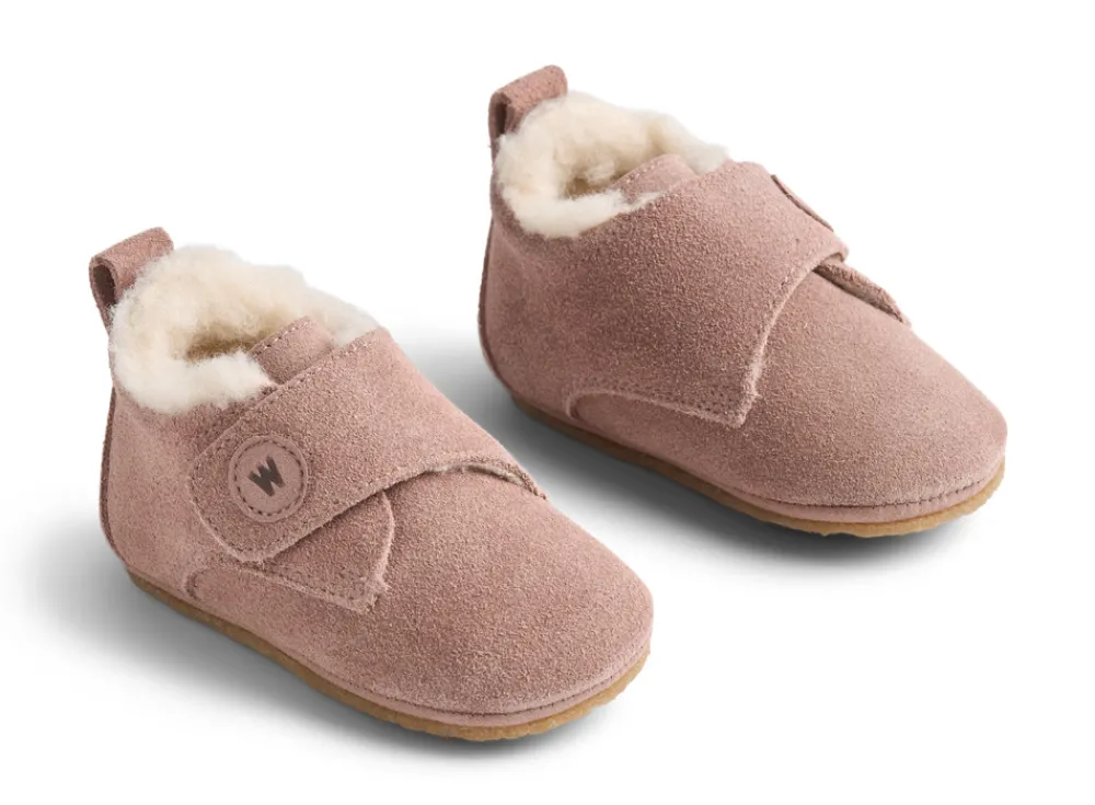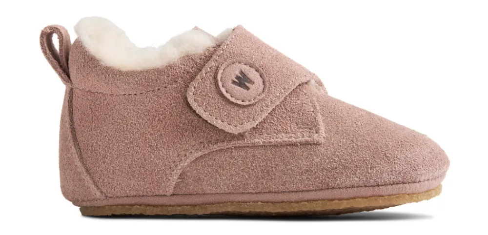 Varme og hyggelige hjemmesko med velcrolukning og uldfoer til din baby.