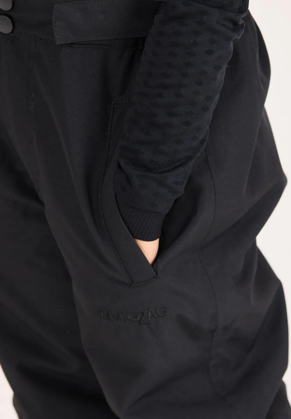 Med skibukserne Soho til børn fra ZIGZAG kan du uden problemer komme ud på pisterne! Ydermaterialet er fremstillet af polyester, og den 10.000 mm-membran er vandtæt, vindtæt og åndbar. Alle sømme er tapede og dermed vandtætte. Linningen kan justeres i bredden, og selerne er aftagelige. Snefanget og velcrolukningen ved buksebenet holder sneen ude. Liftkortet kan opbevares i enten venstre eller højre lynlåslomme foran. Polstringen giver fremragende varmeisolering på kolde dage, hvilket gør bukserne ideelle til skiferien såvel som til leg i sneen om vinteren.